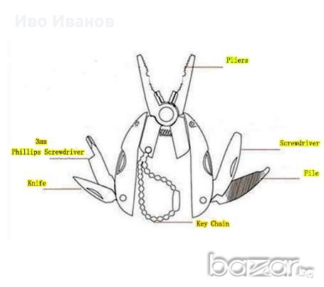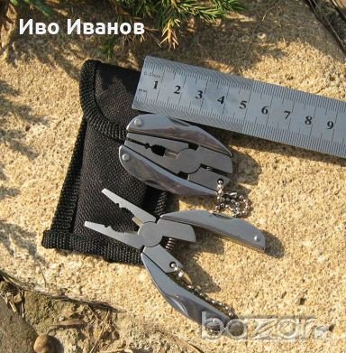 Мини комплекта садържа:клещи,отверка звезда,малко ножче,пила,права отверка,верижка за закачане,калъфче. Удобен за непридвидими ситуации.