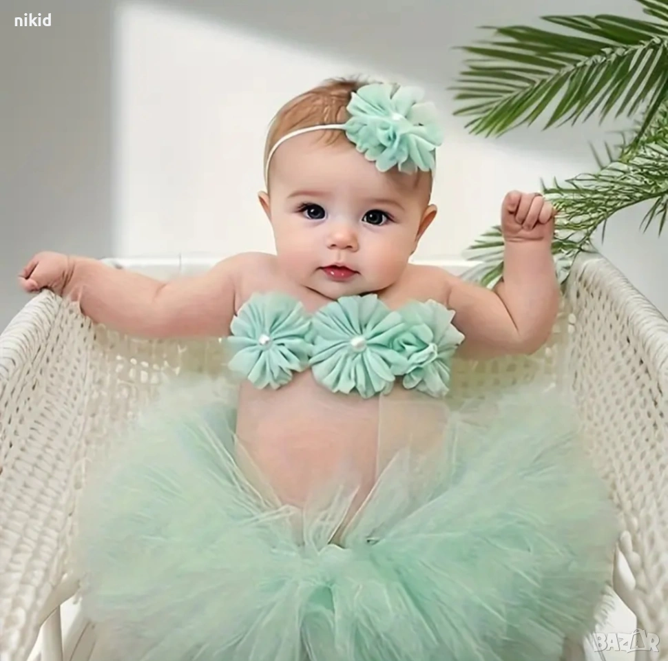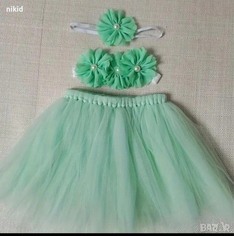 Светло зелена туту пола пачка поличка пачка и лента с пандела за глава за бебе фотосесия фото декор