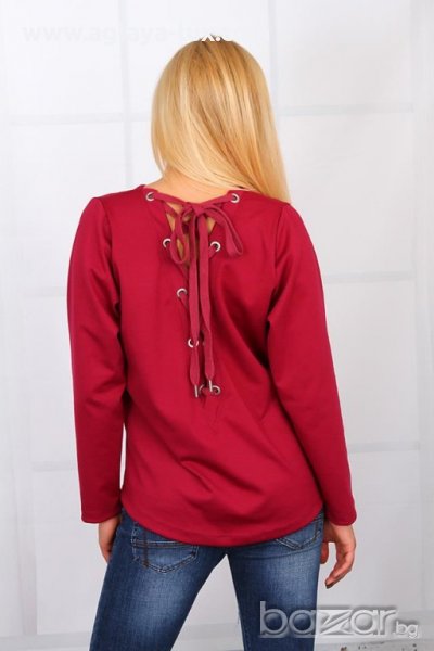 дамска блуза,бордо с връзки може да се носи и от двете страни,98% памук,2% еластан,размери-S(гр.об-84-88;талия-64-68;ханш-90-94);-M(гр.об-88-92;талия-68-72;ханш-94-98);-L(гр.об-96-100;талия-76-80;ханш-100-104);-XL(гр.об-102-108; талия-80-86;ханш-104-110;)