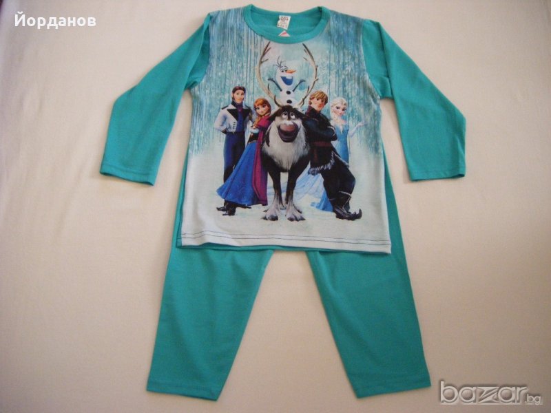 Детска пижама с Елза-№98 и Леденото кралство-№98,и един брой с жълто пате с размер 134.Тънко и фино трико.100% памук.Български производител.