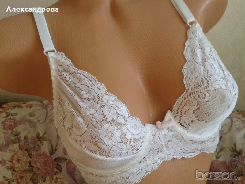 Гръцко бельо Apple. Сутиен от мека и еластична дантела, сатен и памук. Мека чашка с банел. → Обява 20564684