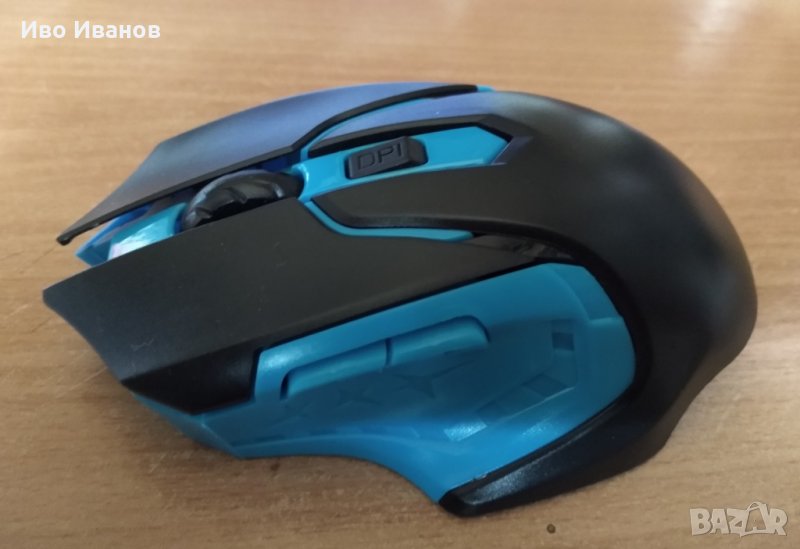 3200dpi и време на реакция 1ms. Мишката разполага с 6 клавиша, захранване с батерии ААА и ключе за изключване захранването с цел икономия на енергия. Разполага с 2.4GHz безжичнаUSB радиовръзка до 8м. Размери 108x75x38mm и тегло 75g. Цвят син+черен. С 6 бутона. За дясна ръка, удобно ляга в дланта, включи и играй.