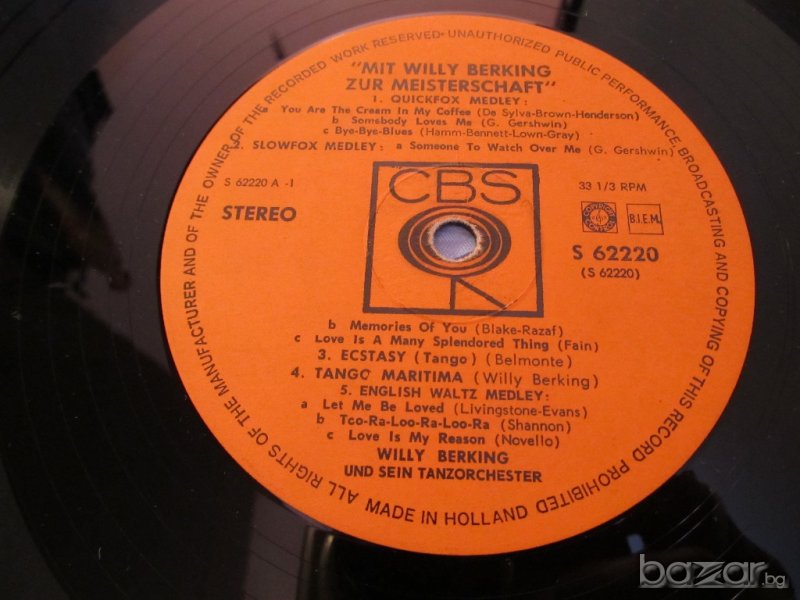 Рядка Грамофонна плоча - Mit willy Berking - zur meistershaft - танго - изд. 70те години