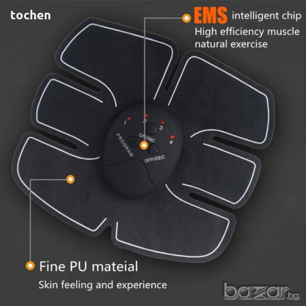 Този продукт е физическо тренировъчно устройство за подобряване на мускулите ви. Без дори да вдигате пръст, може да постигнете тялото на вашите мечти. В зависимост от областта на тялото, към която искате да насочвате. Меката подложка е удобна и приляга добре на контурите на вашата кожа, докато електродите и проводимите гелови листове, разпределят импулсите ефективно. Какво е EMS? Обикновено мускулите действат в отговор на сигнали от мозъка. EMS (електрическа мускулна стимулация) е технология, която използва електрически сигнали за директно стимулиране и упражняване на мускулите.