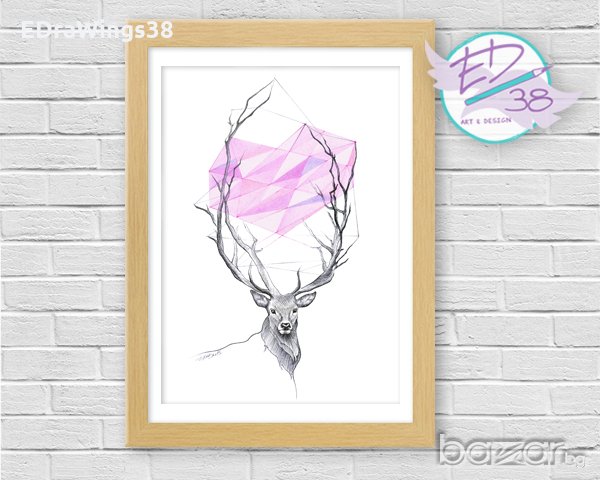 Рисунка Арт принт "Dear" / елен, сърце, любов, розово → Обява 20584163