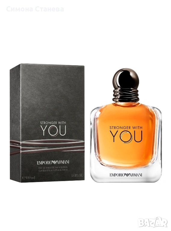 ARMANI STRONGER WITH YOU EDT 100 МЛ - ТЕСТЕР ЗА МЪЖЕ.Мъжката тоалетна вода Giorgio Armani Emporio Stronger With You е енергичен аромат за съвременния мъж. Този, който я носи, живее в настоящето и е уверено елегантен.Ароматът е непредсказуем, изненадващ със своята оригиналност. Във връхните тонове звучи ясната смес от кардамон, розов пипер и листенца на теменуга. В неговото олфакторно сърце цари градински чай, символизиращ безкрайна младост. Чувствената ванилия в базата е в любовна прегръдка със сладкия акорд на кестен и поляга под неустоимата привлекателност на мускус.Мъжката тоалетна вода Armani Emporio Stronger With You възниква в двойка с дамската версия Armani Emporio Because It’s You. Ароматите се допълват взаимно и заедно формират диалога на аромат за нея и за него.