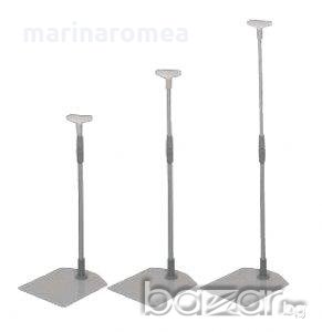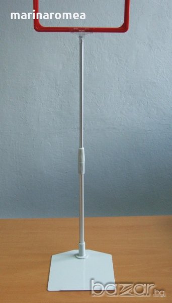 Правоъгълна метална основа 160 х 190 мм с централен отвор за тръба с диаметър 9 мм, алуминиева регулируема тръба от 300 до 600 мм, Т - накрайник, червена пластмасова рамка, защитно прозрачно фолио(джоб).