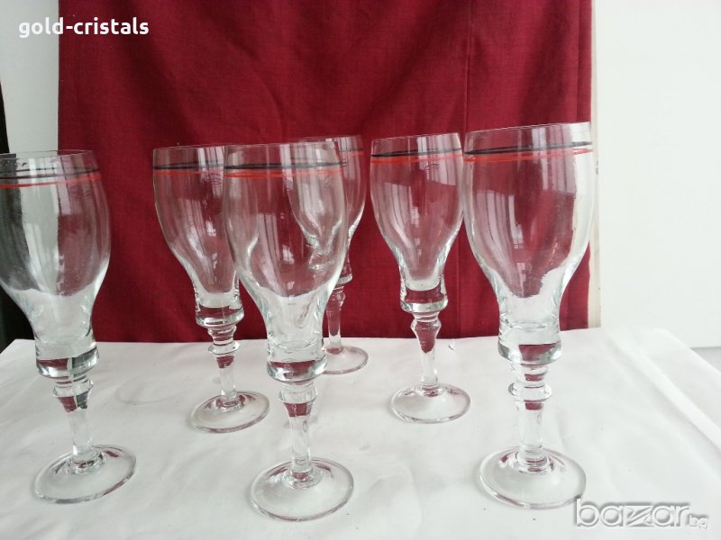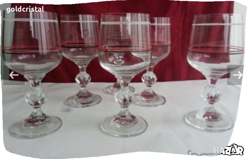 ретро стъклени чаши на столче за вино калиево кристално стъкло за вино 6бр -45лв налични 12бр чаши за ракия или за вино втори модел 6бр-35лв налични 11бр всичко е без забележки сервиз комплект сет лот ретро арт декор винтидж колекция стари старинни антикварни предмети обзавеждане за дома и семейството подходящи за подарък за ценители и колекционери чаши на столче стъклени чаши чашки маса празници гости трапезария подарък празник дома трапезария празници тържество посуда кухня готвене сервиране хранене подарък празник стъкло кристал стъклени сватба годеж юбилей за вино шампанско вода сок