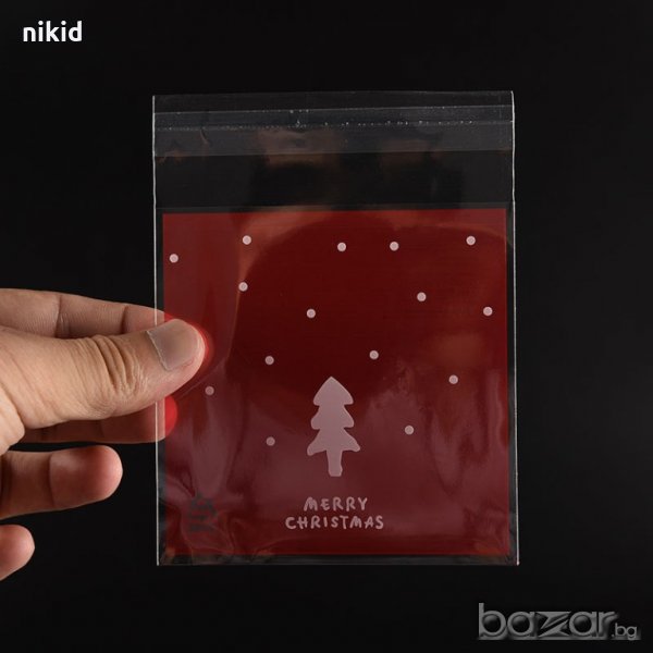 50 елха Merry Christmas червени Коледни опаковъчни пликчета торбички за дребни сладки или подаръци → Обява 20618816