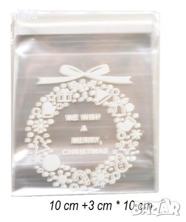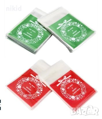 50 Коледен венец червен зелен бял новогодишни опаковъчни пликчета торбички за дребни сладки подаръци → Обява 20618944