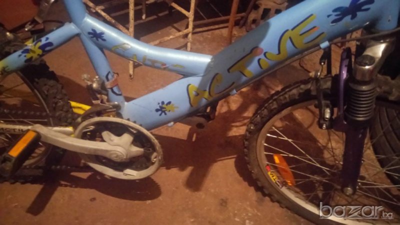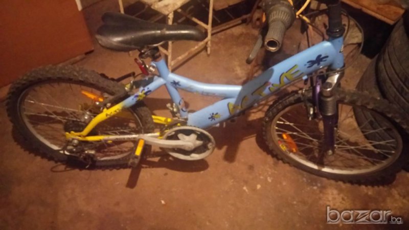 Велосипеда е употребяван.В цветовете синьо и жълто е, и поради това е подходящ както за момче така и за момиче.Има 6 скорости.Подходящ е за деца от 6 до 12 години.