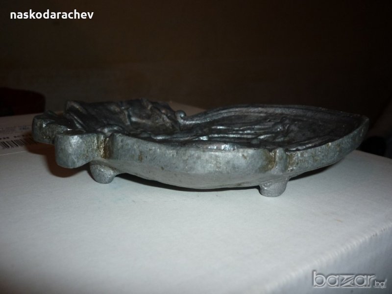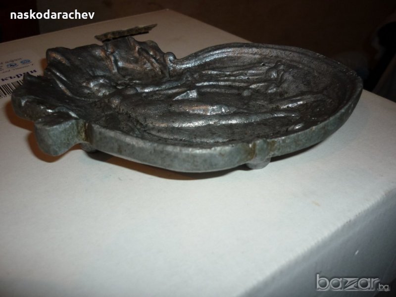 Изключително красив ретро лят алуминиев пепелник с девойка, размери в най-широката част 16 см х 11 см, височина от 2,5 - 3 см, има четири крачета, много добре съхранен и запазен, за ценители и колекционери, цена - 50 лв, пращам с Еконт.