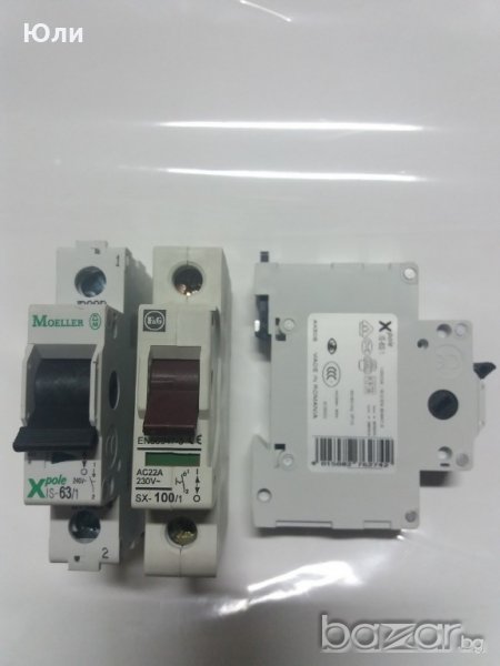 контактори, импулсни релета, бутони, шалтери и дефектнотокови защити от марките EATON- MOELLER, F& G, SCHNEIDER ELECTRIC, MERLIN GERIN, TELEMECHANIQUE, LEGRAND, AEG, AEZ,