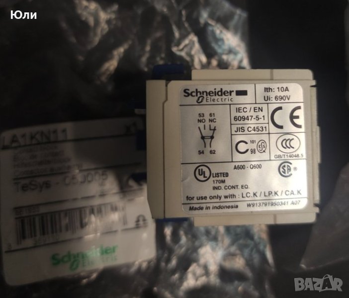 - помощен контакт LA1KN11 на Schneider Electric, 1н.о.+1н.з., за мини контактори LC1K, 5 броя 9.80 лв/брой. Нови, неупотребявани.
