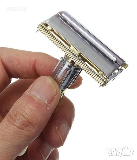 Традиционна самобръсначка в комплект с удобен несесер с резервно ножче. Просто завъртете дръжката на тази самобръсначка