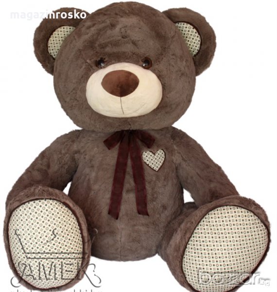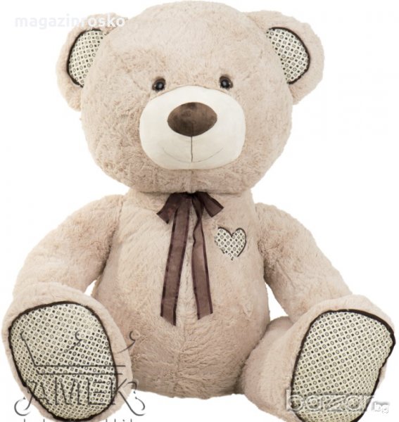 Плюшеният мечок е впечатляващ по своите размери и визия. Апликациите на лапите, ушите и малко сърчице са стилни и изискани и допълват линията на дизай на играчката. Изработен от мек и изключително приятен на допир плюш мечокът е страхотен подарък както за малки, така и за големи.