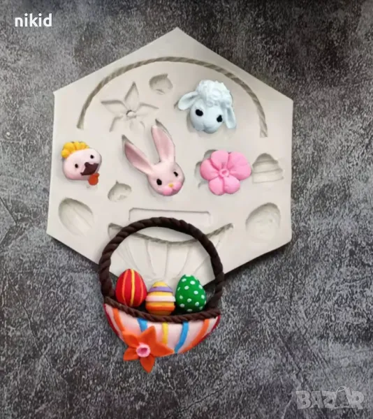 Великденска кошница яйца зайче заек агне пиле цветя силиконов молд форма за фондан украса декорация → Обява 20679751