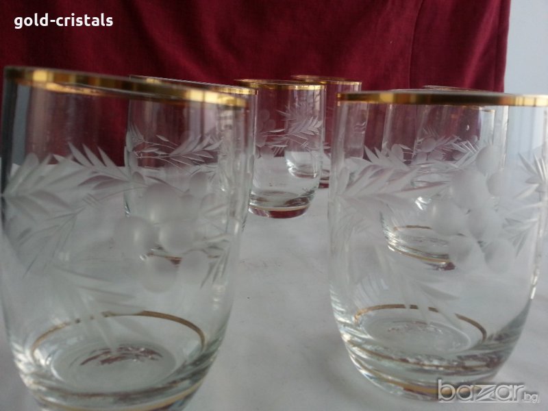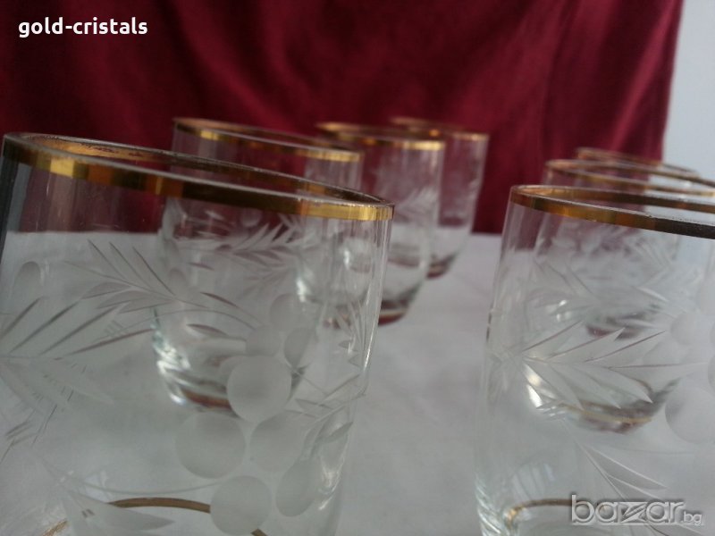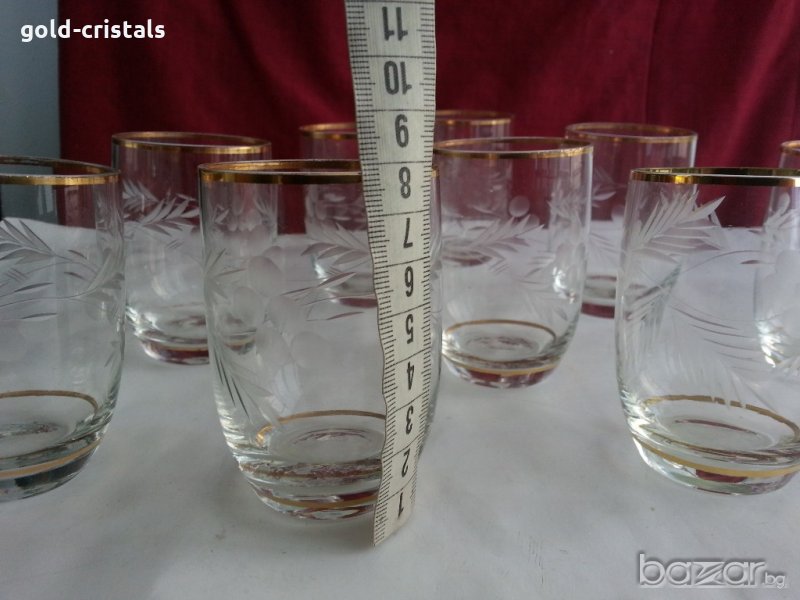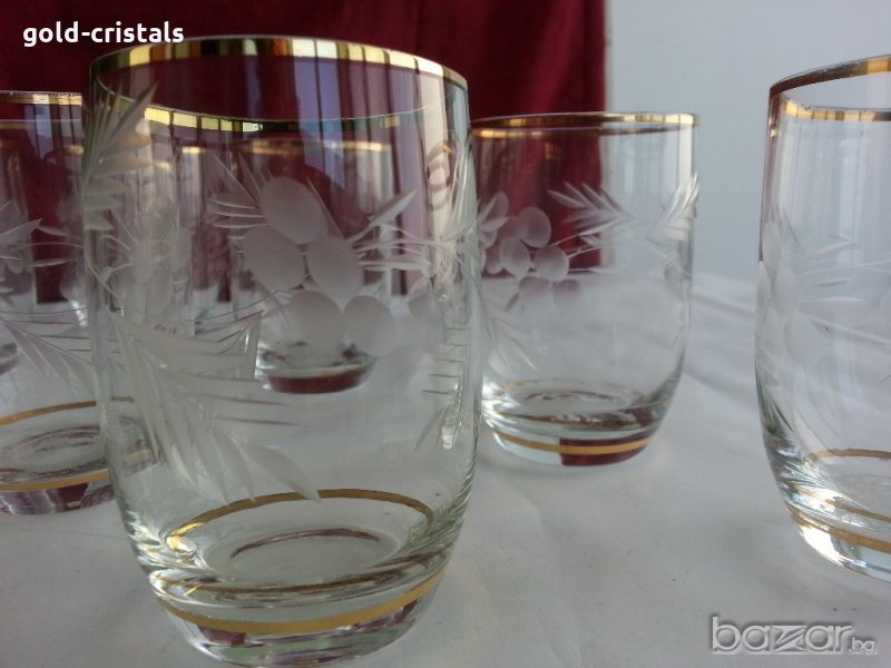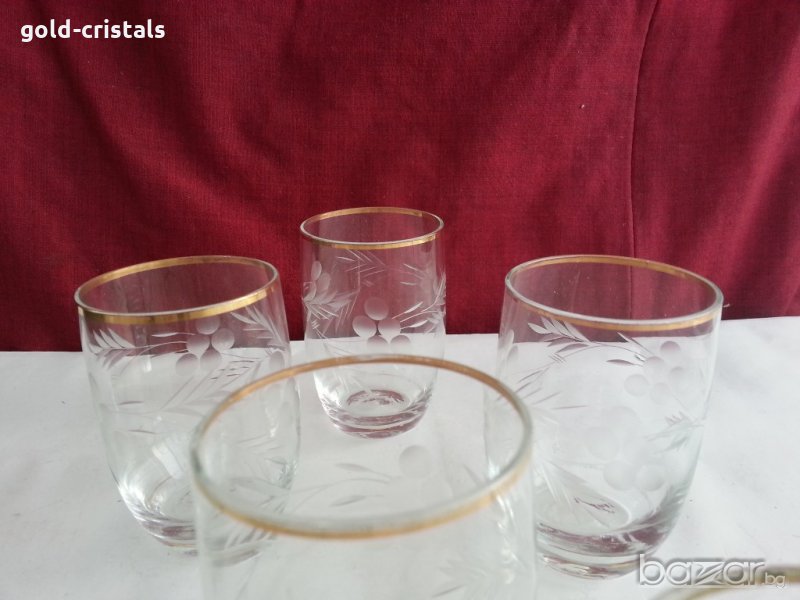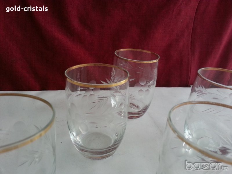 Стъклени чаши с златен кант позлата тънкостенни гравирани 6 бр- 59лв 4 бр- 39лв каната е 25лв -продадена комплект сет лот стари старинни ретро арт декор винтидж колекция стъклени кристални гравюра чашки стари антикварни предмети обзавеждане за дома и семейството подходящи за подарък за ценители и колекционери