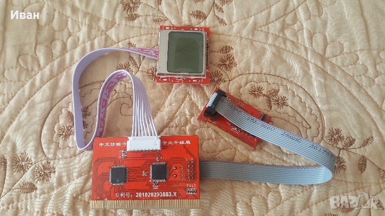 Комплектът е чисто нов - не е ползван. Червената платка е комбинирана за диагностика на настолни компютри и лаптопи. Има LCD дисплей с подсветка свързан към главната платка с кабел, на който се изобразява евентуалния проблем с компютъра (лаптопа). Вторият вид е тестер за настолни компютърни захранвания. Отново с подсветка и звуков сигнал при възникнал проблем.
