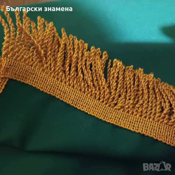 Изработено от полиетернна коприна със златно покритие надписа и обшито със златни ресни.