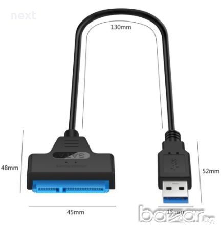 Кабел USB 3.0 за връзка към 2,5" SATA III(или SATA II) твърд диск или SSD за лаптоп.