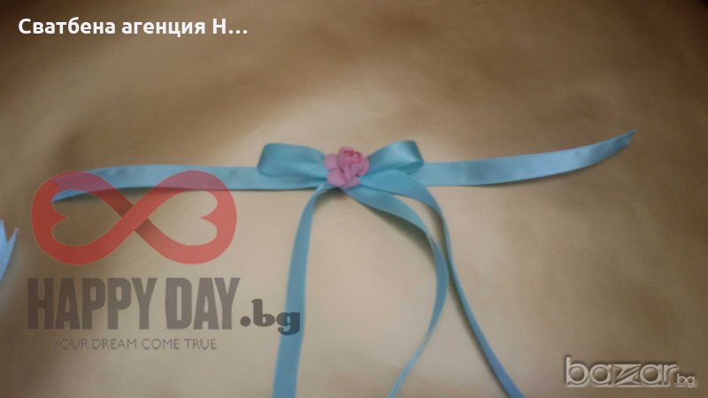 Изработена от тънки сатенени панделки и декорирана с малки нежни розички. Може да бъде изработена в цветове по избор.