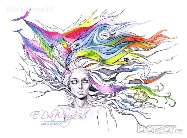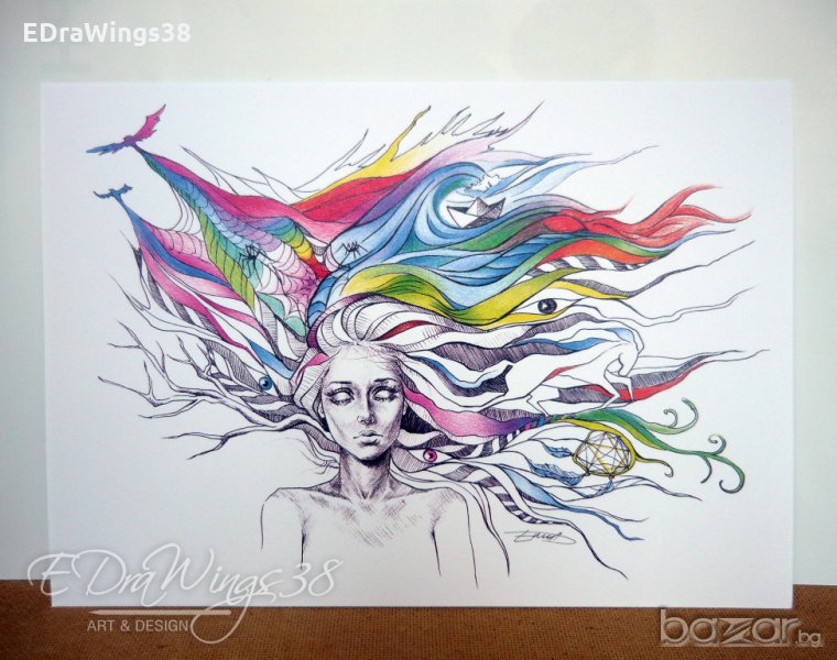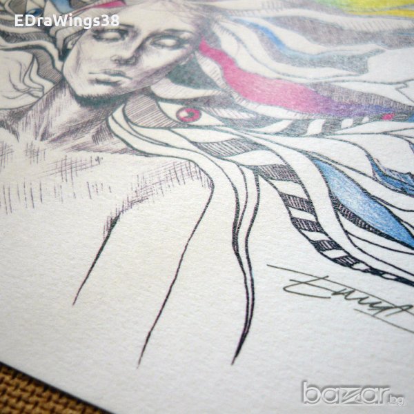 Принт копие /репродукция/ на моя авторска рисунка, правена с тънкописец и цветни моливи.