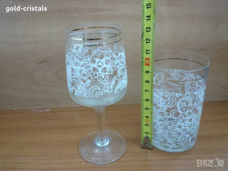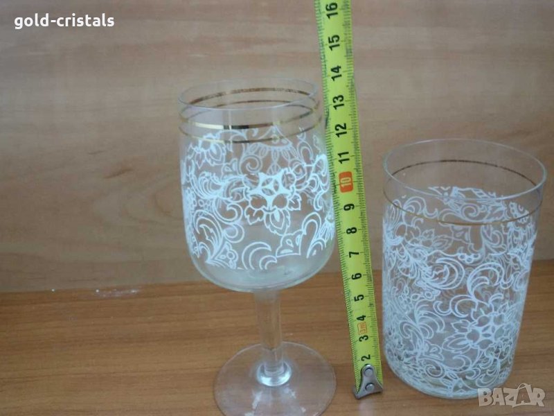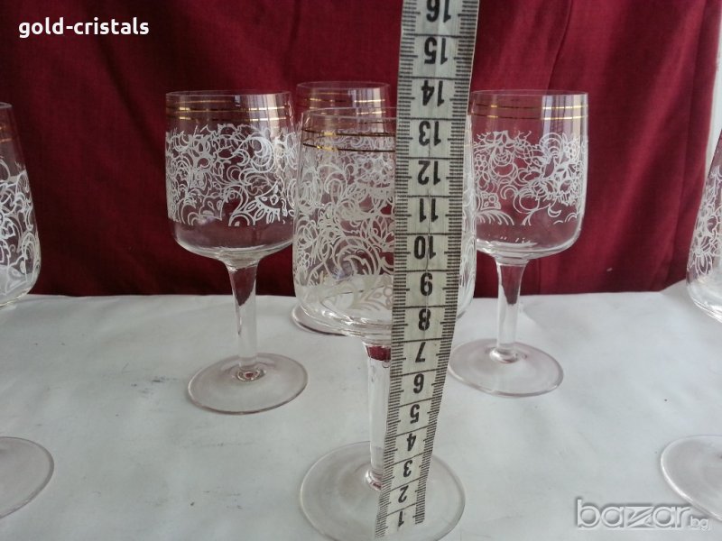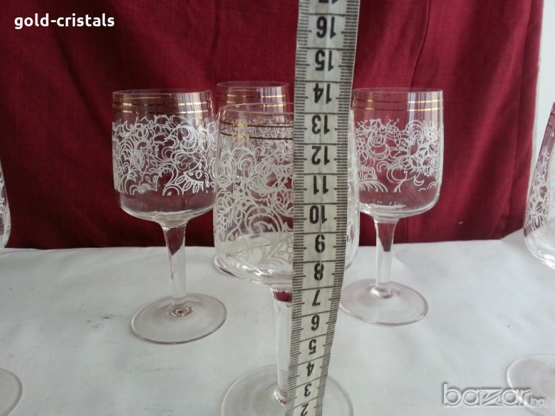 сервиз кристални чаши за вино или ракия с златен кант 6бр-25€ за вода или уиски 6бр-25€за вода 6 бр -40€ за ракия 4 бр кана 24€ сервиз комплект сет лот ретро арт декор винтидж колекция стари старинни антикварни предмети обзавеждане за дома и семейството подходящи за подарък за ценители и колекционери