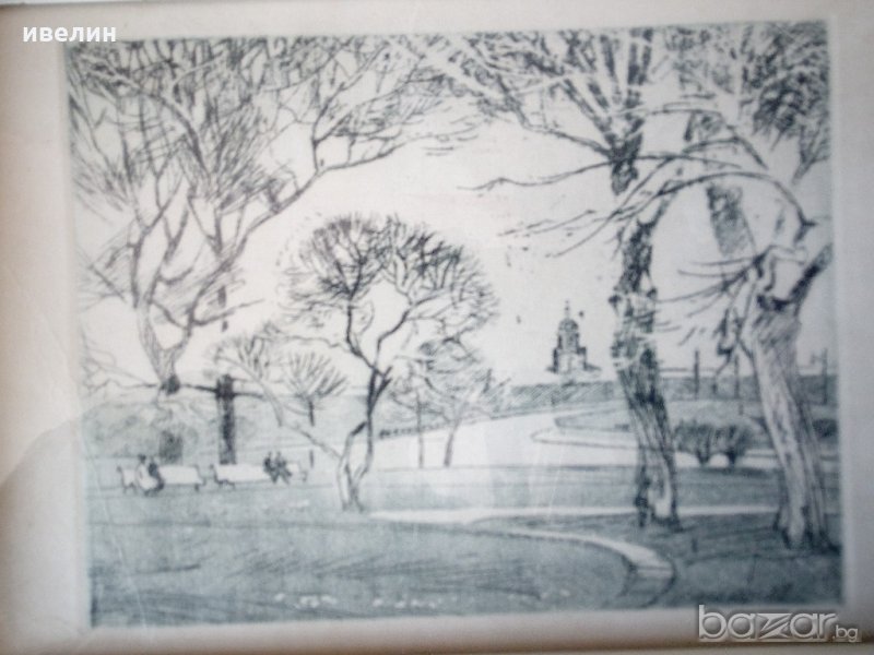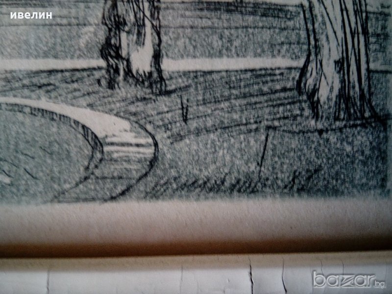 картина-графика,подписана,дървена рамка със стъкло с размери 24см/34см,на графиката 16см/21см.