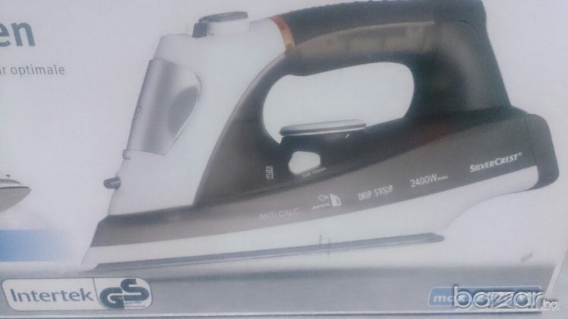 Нова парна ютия внос от Германия.Керамична плоча,хоризонтална и вертикална пара,система против кафене,функция самопочистване.Безопасно самоизключване след 30 секунди-хоризонтално.Вертикално след 8 минути.