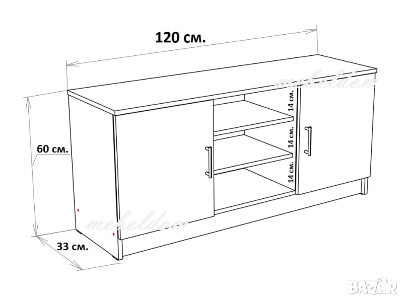 размери: 120 / 33 / височина 60см. (виж схемата)
