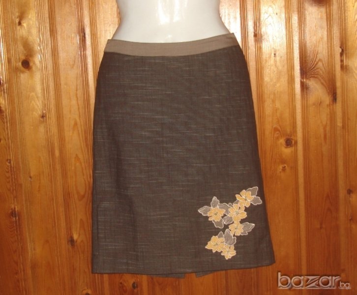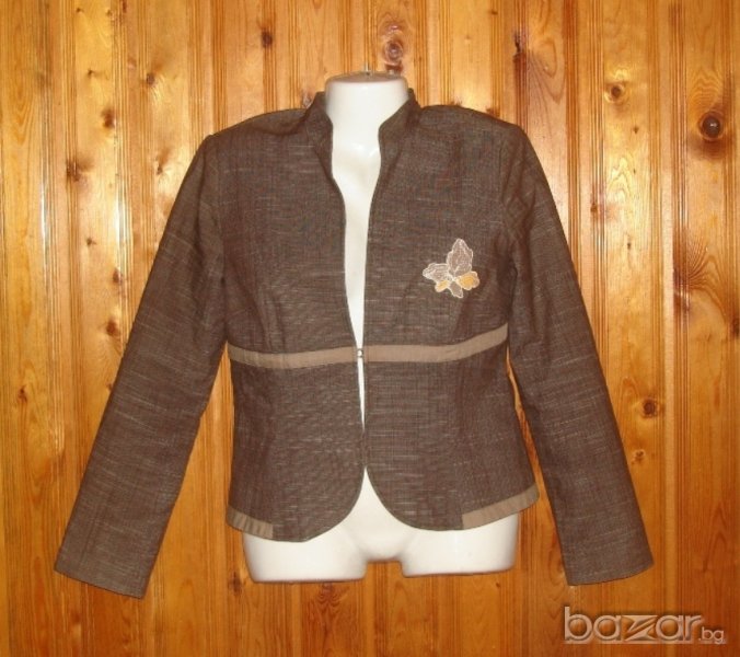 проблема е, че рязко напълнях, не мога да го сложаповече, а е като нов, буквално. Може в офиса с него, из града на разходка, при официален случай, както виепожелаете, винаги ще е подходящ. Флоралните бродиранимотиви не омаловажат факта да се носи като официален, напротив. Цвета е кафяв, на интересно изпъкващи нишки,