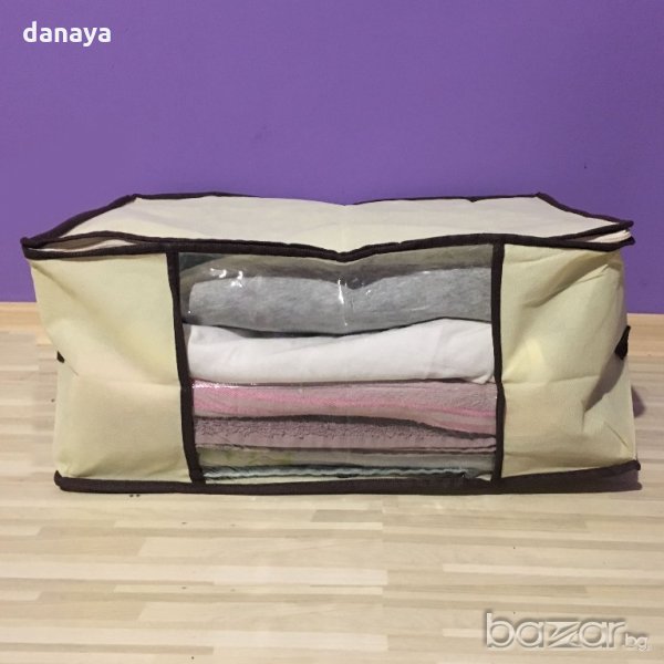 Органайзера е идеален както за съхранение на дрехи, спално бельо и завивки извън сезона им, така и за пренасянето им по време на ваканции и др.