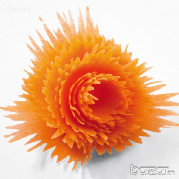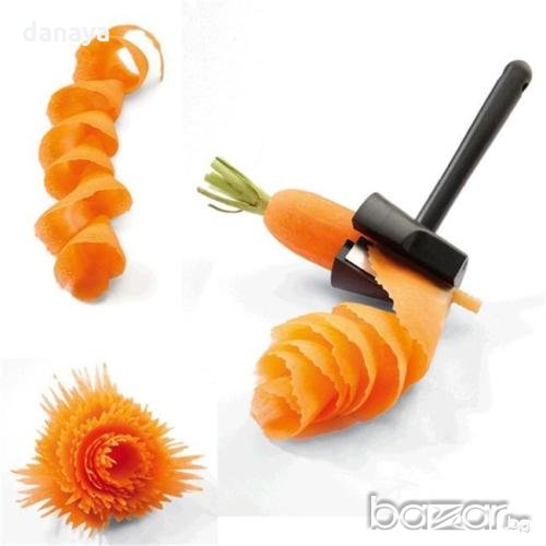 – За лесно рязане правене на цветя и спирали от твърди и дълги зеленчуци, като моркови или корени.