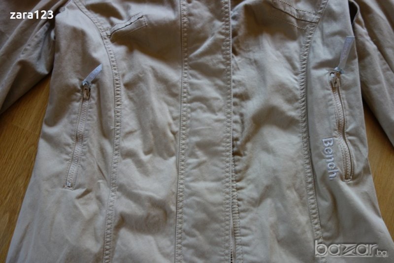 Якето е ново, много красиво и качествено. Марката е Bench, оригинална цена 110 паунда. Има двоен цип, джобове на ръкавите, коланче на врата, не е дебело, платнено е. Като размери: