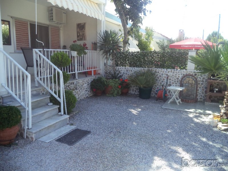 Къщата се намира на 5 мин. пеша от централния плаж и главната улица на курорта. Разполага с хол с кухненски бокс,отделна спалня, санитарен възел, тераса и двор. Тъй като е разположена на две улици, има достатъчно място за паркиране на личните автомобили.