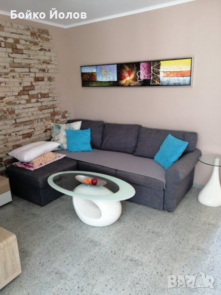 В хола има голям разтегателен ъглов диван, който може да се ползва от 1-2 човека.В хола има 43 инчов телевизор с Булсатком. Кухненският бокс е напълно оборудван - фурна, котлони, хладилник с