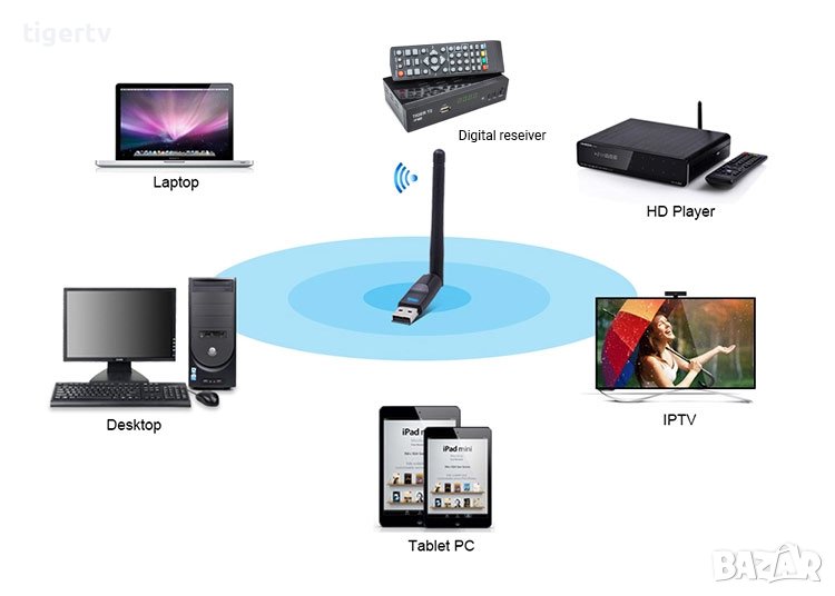 сателитен приемник, медийни плеъри, компютри, лаптоп, мултимедиен стрийминг, игри и сърфиран USB съвместим Window XP, Vista, 7/ 8/ 10, MAC OS, Linux. Тестван и работи отлично!