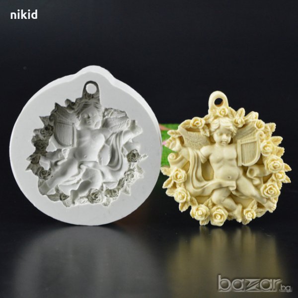 3D Младенец ангел свири в кръг с рози голям силиконов молд форма декорация фондан гипс кръщене → Обява 20815039