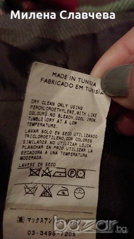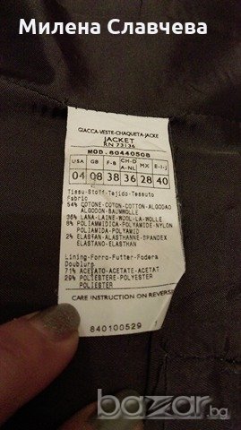 100% ОРИГИНАЛНО дамско сако MAX&Co.Отговаря на №XS.При по-дребна жена ръкавите са нормални,но при висока и слаба жена ръкава се получава 7/8.При интерес изпращам точни размери.