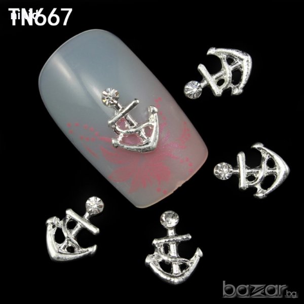 морска котва ЗЛАТИСТА СРЕБРИСТА с камъче бижу за нокти декорация украса за маникюр → Обява 20837580