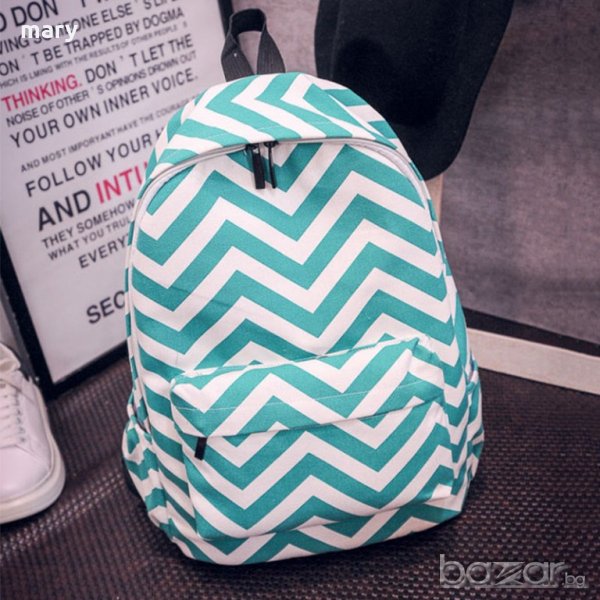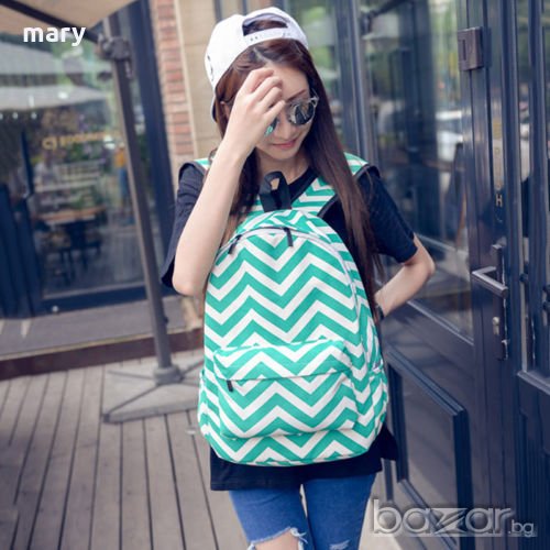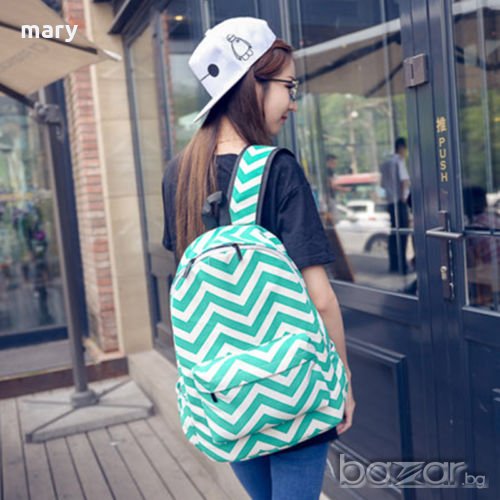 унисекс раница с ефектен фигурален дизайн в зелено и бяло