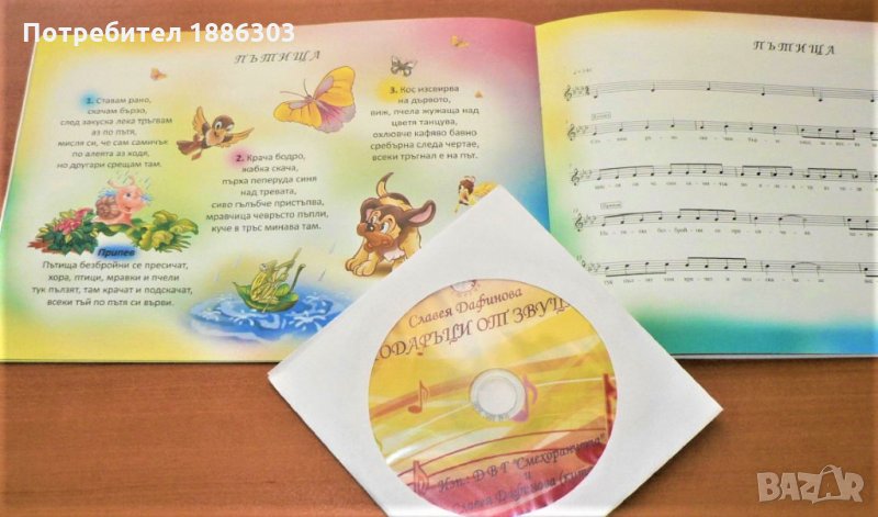 Предлагам детска песнопойка с компакт диск ”Подаръци от звуци” за деца от 3 до 8-годишна възраст.
