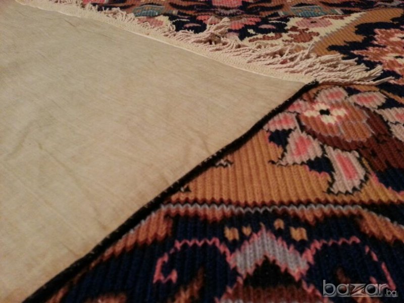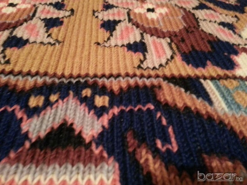Красив кавьор/ покривка/ килим, ръчно изработен с вълнени конци, подплатен, с размери 135/85см /без ресните/.