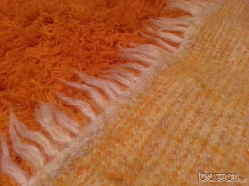 Нов домашно тъкан вълнен губер, цвят портокалово оранжев, размери 240/210см, дълъг косъм.