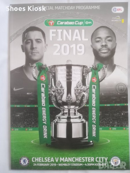 Manchester City - Chelsea , Carabao Cup Final 2019 , игран на 24.02.2019 , Wembley Stadium , London , краен резултат 0:0 Манчестър Сити печели трофея с 4-3 след изпълнение на дузпи! Това е финалът в който вратарят на Челси - Кепа Аризабалага отказа на треньорите да напусне терена за сметка на резервния вратар Уили Кабалеро !Втора поредна спечелена EFL Carabao Cup за Пеп Гуардиола с Манчестър Сити ! Цена 15.00 Euro за една програма.
