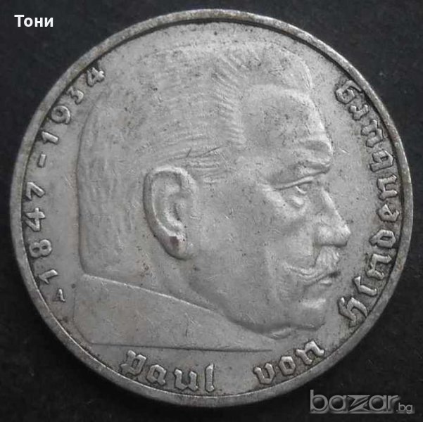 Монета Трети Райх 2 Reichsmark 1937 г. - За колекция → Обява 20868639