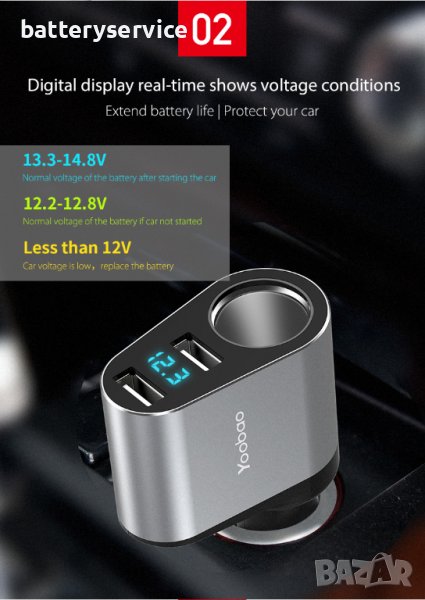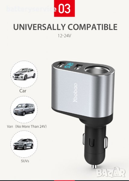 Зарядно за кола 2 USB - сребристо