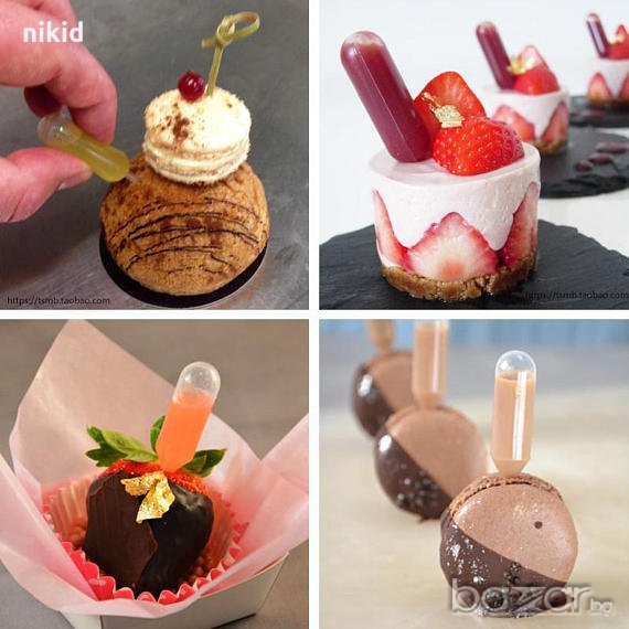напълнете пишетата с течност за мушнете към десерта и поднесета