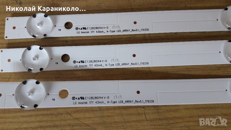 HORIZON 43HL7330F-лед подсветка - 17DLB43VER1-A - 2бр. х 7диода,820мм и 17DLB43VER1-B -2бр. х 7диода,820мм.Цена за лента - 5 евро.Общо всички 4бр.- 15 евро.